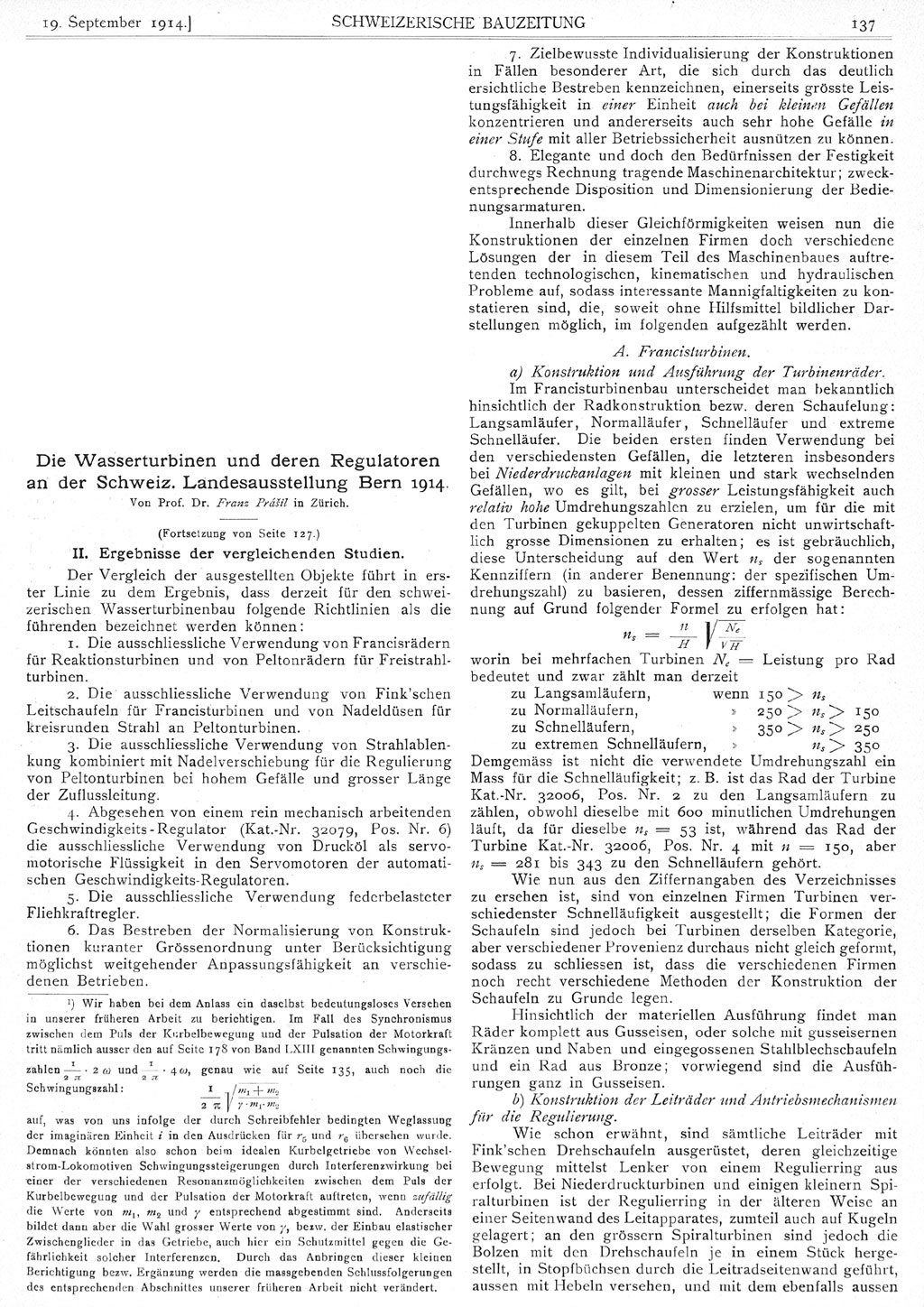 a) Konstruktion und Ausführung der Turbinenräderb) Konstruktion der Leiträder und Antriebsmechanisman für die Regulierungc) Spiralgehäused) Wellen und ihre Lagerunge)Automatische Geschwindigkeitsregulatoren