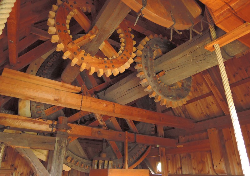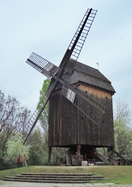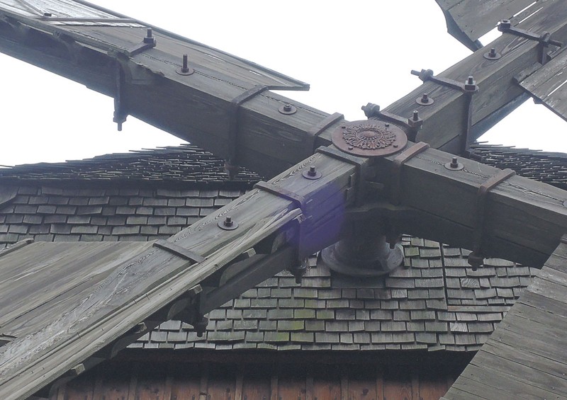 DIE MÜHLE IST NACH DEM BOCK BENANNT, AUF DEM DAS MÜHLENHAUS RUHT. MIT DEM LANGEN STEERT WIRD SIE ÜBER DEN BOCK IN DEN WIND GEDREHT. DIE FLÜGEL SIND MIT "TÜREN" BELEGT. SIE WERDEN HERAUSGENOMMEN. WENN DIE MÜHLE NICHT IN BETRIEB IST. AB WINDSTÄRKE 4 KANN GETREIDE GESCHROTET WERDEN. BOCKWINDMÜHLEN WAREN IN UNVERÄNDERTER KONSTRUKTION SEIT DEM 12.JH IN MITTELEUROPA VERBREITET. ERST NACH DEM 2.WELTKRIEG WURDEN SIE ENDGÜLTIG VON MOTORMÜHLENVERDRÄNGT.