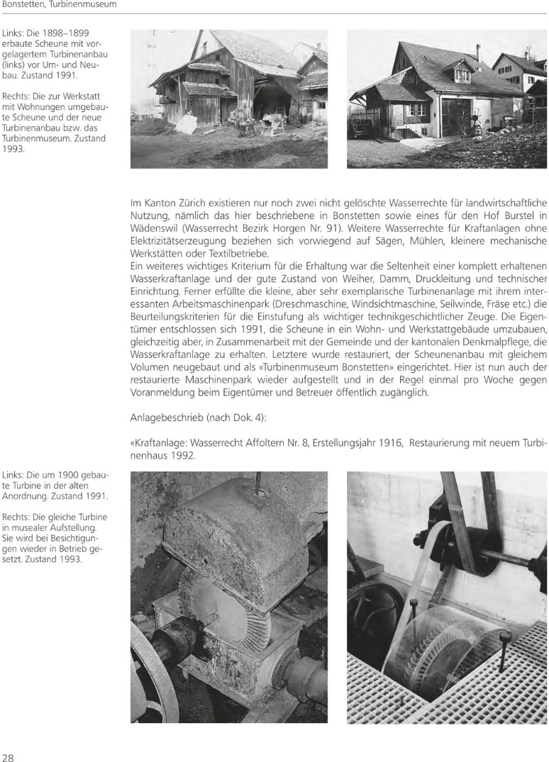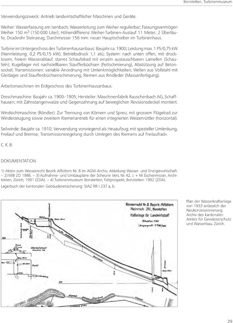 Im Kanton Zürich bestehen heute noch zwei nicht gelöschte, für die landwirtschaftliche Nutzung erteilte Wasserrechte. Eines davon lautet zu Gunsten des ehemaligen Hofes Illi im Isenbach, Bonstetten. Im Jahr 1916 ersuchte der damalige Besitzer Heinrich Illi, den Regierungsrat um Bewilligung einer kleinen Wasserkraftanlage zum Betriebe seiner landwirtschaftlichen Maschinen. Diese wurde ihm als Wasserrecht Affoltern Nr. 8 erteilt. Heinrich Illi konnte seinen Bauernbetrieb hierauf modernisieren. Er benutzte die Wasserkraft zum Antrieb von Mostpresse, Heuaufzug, Haferquetsche, Gerstenquetsche, Maishäcksler, Windsichtmaschine und Dreschmaschine. Nebst diesen fest montierten Anlagen wurde mit einer mobilen Turbine auch eine Holzfräse angetrieben. Der baufällige Turbinenhausanbau wurde 1991 neu erstellt, die Turbine restauriert und die vorhandenen Arbeitsmaschinen revidiert. Auch der Weiher mit Zuleitung und Wehranlage sowie die Druckleitung zur Turbine wurden wiederhergestellt.