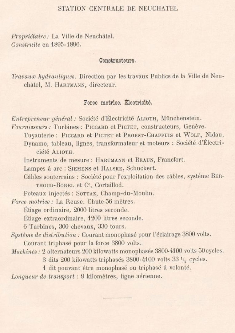 1895, la ville de Neuchâtel possède une production d'énergie électrique à