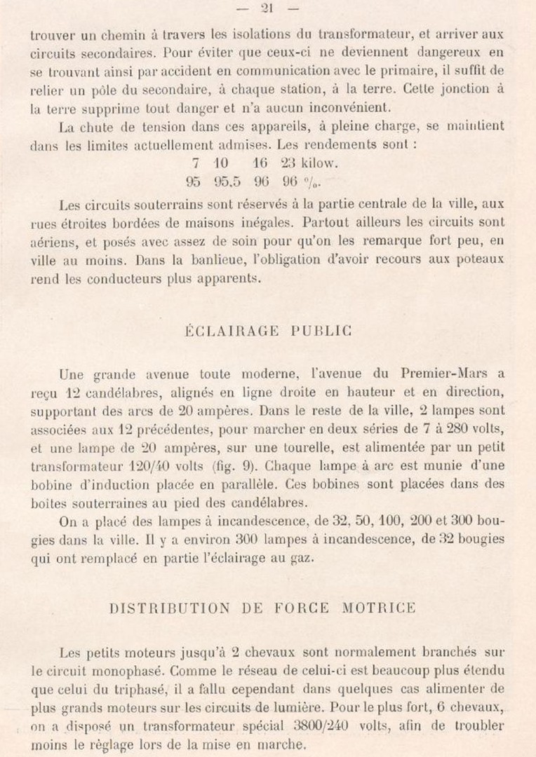 l'énergie nécessaire aux moteurs, aux trams et à l'éclairage de la ville de