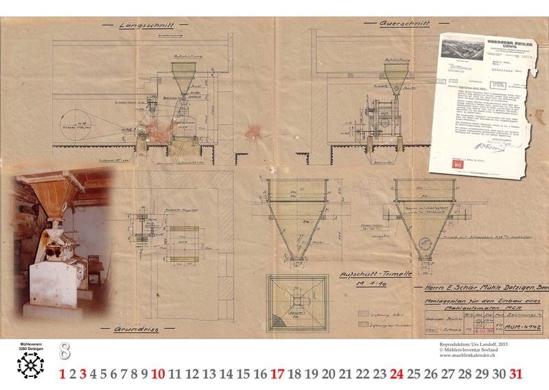 Der imposante Hochstudbau wurde 1790 nach dem Brand eines Vorgängerbaues neu errichtet. Stilllegung der Mühle 1968. 1998 kauften Annelies Peter und Christoph Hüsser die Liegenschaft und gründen das Sozialprojekt „Arbeits- und Lebensgemeinschaft (ALG) alte Mühle“, die geistig behinderten Erwachsenen eine sinnvolle Lebensgestaltung ermöglicht. 2001 bildete sich der Mühleverein Dotzigen. Die Anlage steht nach einer intensiven Restaurierungsphase 2001-2004 wieder in Betrieb.