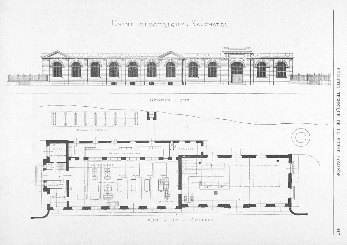Son usine du Pré aux Clées, près Boudry, utilisant une chute de 56 m., avec 6