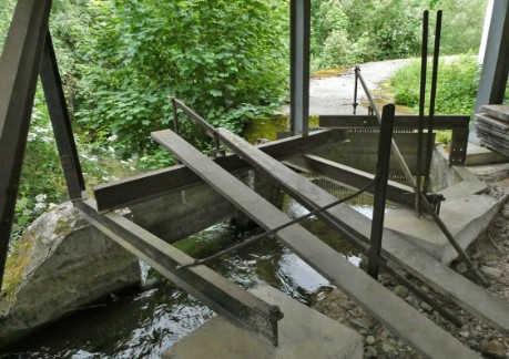 Als Abschluss dieser Wanderung, wollen wir uns das ehemalige Kraftwerk der Scierie de Noiraigue SA etwas näher ansehen. Die Wasserfassung befindet sich auf Koordinate CH1903+ / LV95 2'545'722, 1'200'734, WGS 84 (lat/lon) 46.95547, 6.72557, Höhe 727.7 m.